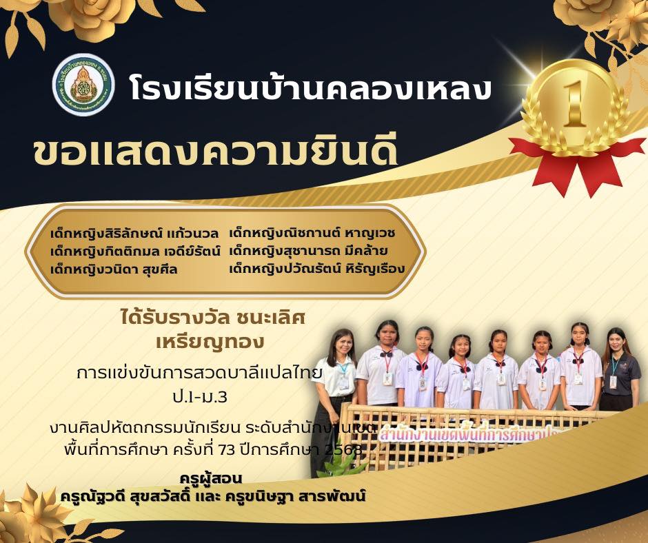 ชนะเลิศ เหรียญทอง สวดบาลีแปลไทย ระดับ ป.4-6