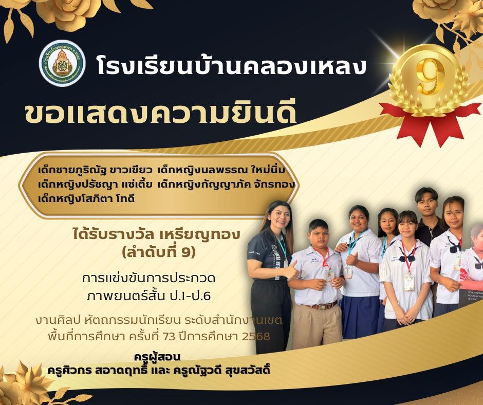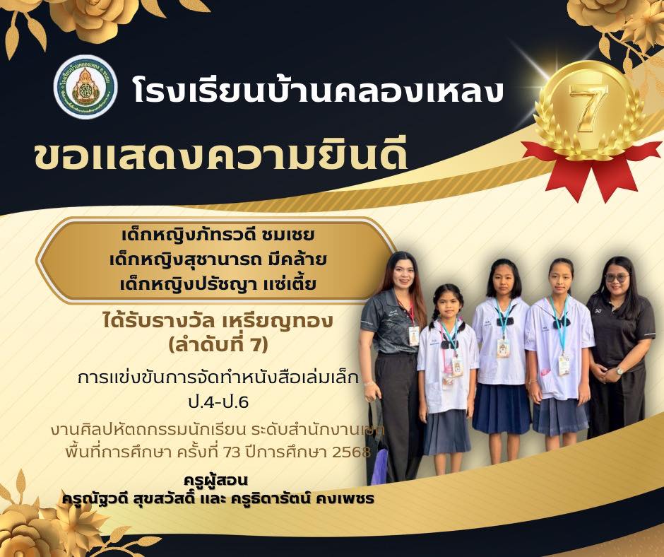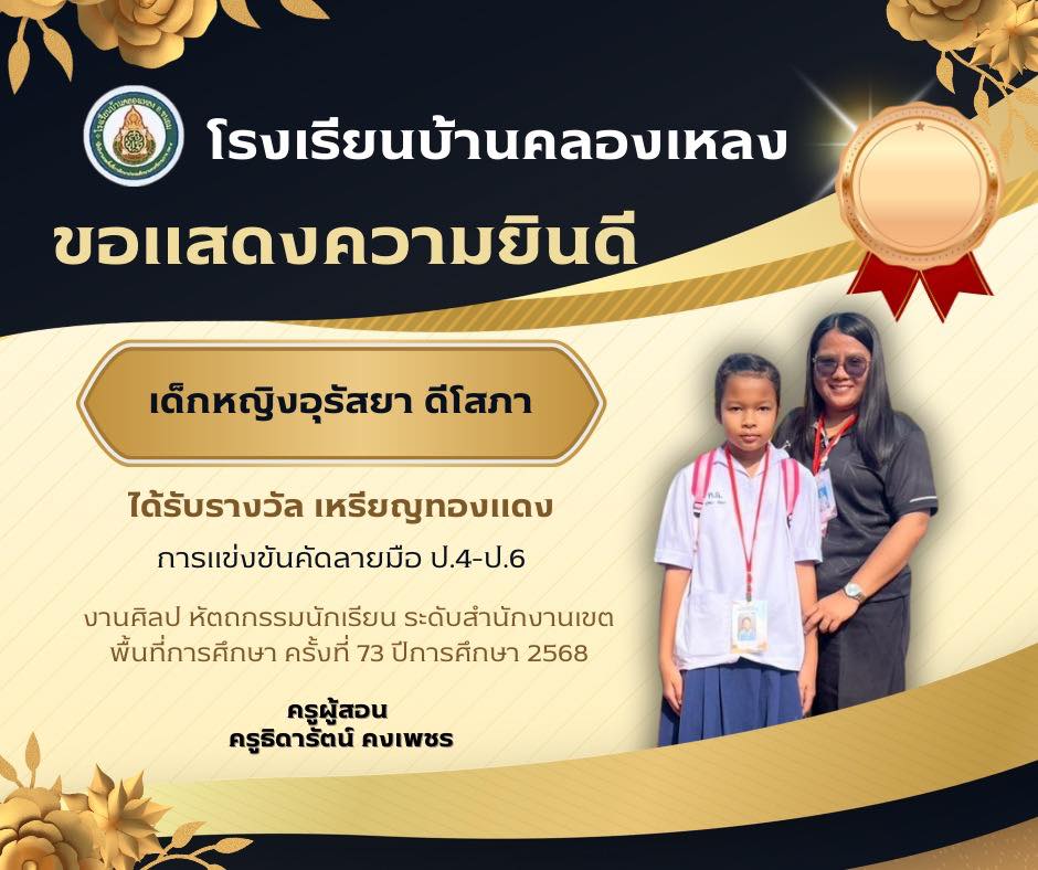 ได้รับรางวัล เหรียญทองแดง คัดลายมือ ป.4-6